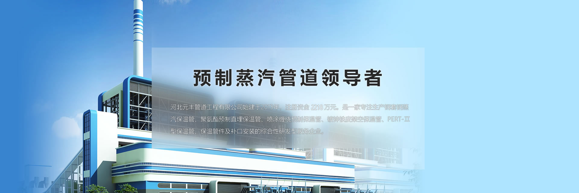 河北元豐管道工程有限公司始建于2013年,注冊資金2218萬元。是一家專注生產鋼套鋼蒸汽保溫管、聚氨酯預制直埋保溫管、噴涂纏繞預制保溫管、鍍鋅鐵皮架空保溫管、PERT-Ⅱ型保溫管、保溫管件及補口安裝的綜合性研發型服務企業。